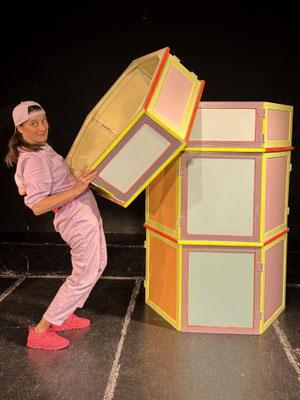 Das wandelbare Bühnenbild aus klappbaren Holzelementen ist ein zentrales Merkmal dieser Inszenierung. Vor den Augen der Zuschauenden verwandeln sich die Orte der Handlungen. Das Eine resultiert aus dem Anderen. Das schützende Elternhaus wird zum unbesteigbaren Turm der Einsamkeit. Dieser zerfällt dann wiederum in eine weite, öde Wüste, einem Ort der Sehnsucht und Stille, aber auch des Neuanfangs.